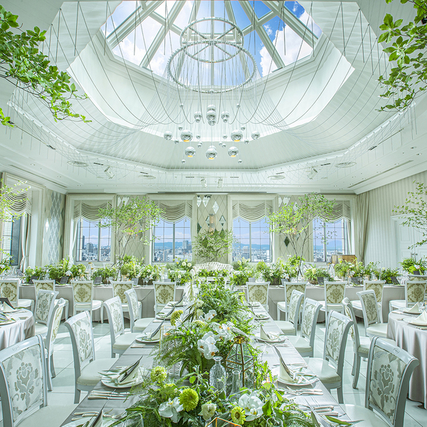 【人数に応じて選べる6つの会場】シャンデリア輝く上質空間・憧れの階段入場・天窓付きの大阪の景色を一望・アットホームな和モダン少人数会場まで6つの会場をご用意。おふたりらしさを取り入れた空間をご提案♪